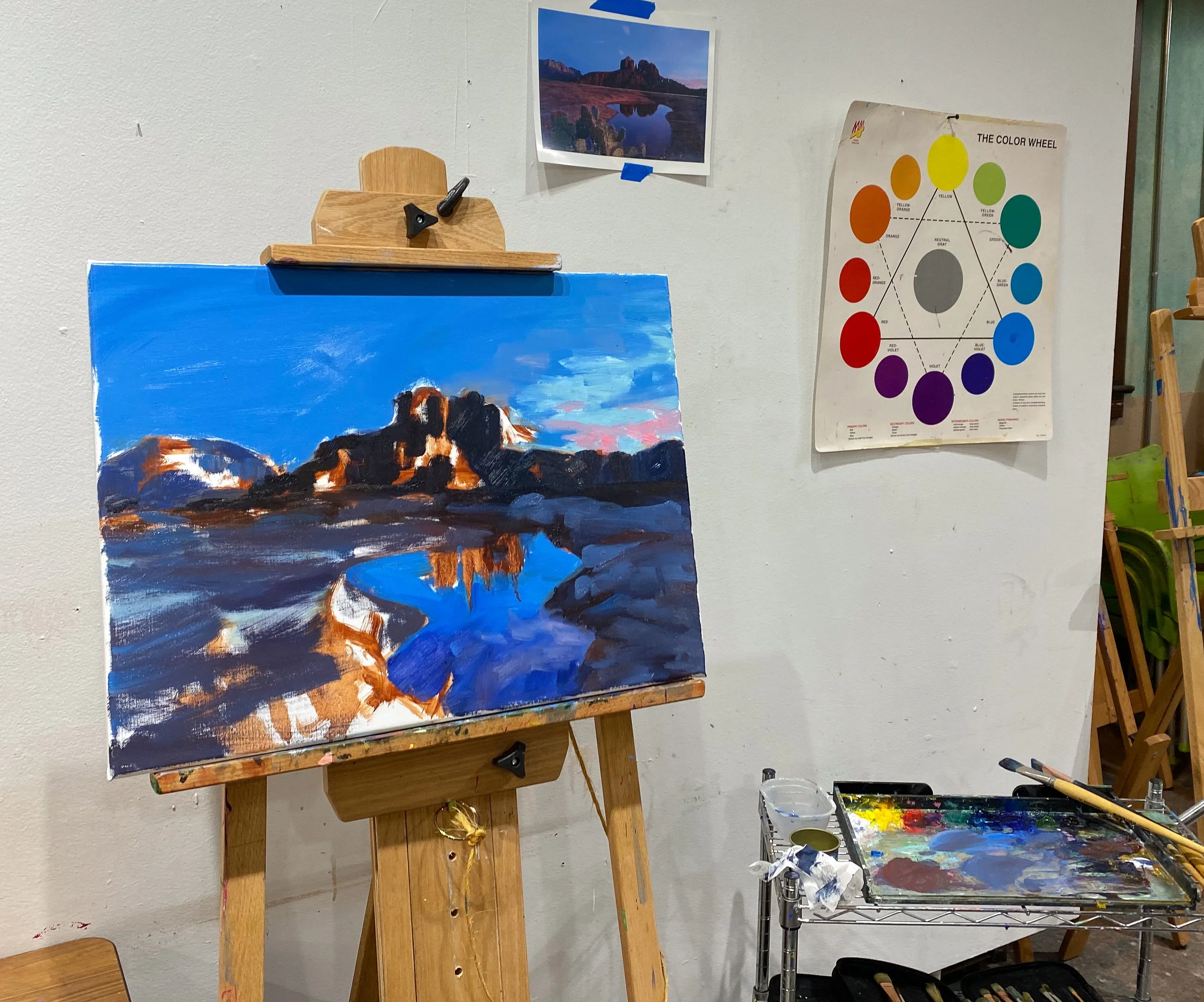 Take your painting practice to the next level. Explore topics in acrylic or oil painting including composition, color relationships, and developing a personal artistic style. This class is appropriate for students who have completed at least one painting class. Projects can be completed in acrylic or oil paint.